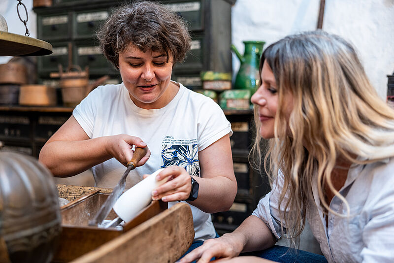 Viele unserer Gäste erkunden das Museum auf eigene Faust, andere nutzen das vielfältige Angebot an Übersichts- und Themenführungen durch die Dauerausstellung sowie unseren herrlichen Apotheken-Garten.