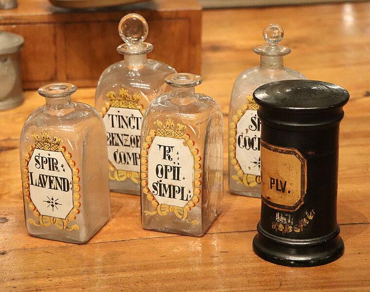 Der Bestand an historischen Apothekenstandgefäßen hat einige spannende Objekte hinzugewonnen. Sie zeigen, dass sich v.a. hochwertige Manufakturerzeugnisse zwar über den Kunsthandel breit verteilt haben, aber durch intensive Recherchen der Verbleib zumindest von Teilen ehemals großer und oft prunkvoller Serien ermittelt und diese zumindest „virtuell“ wieder mit einander verknüpft werden können. Und immer wieder erlangt man spannende Informationen über ihren Kontext.